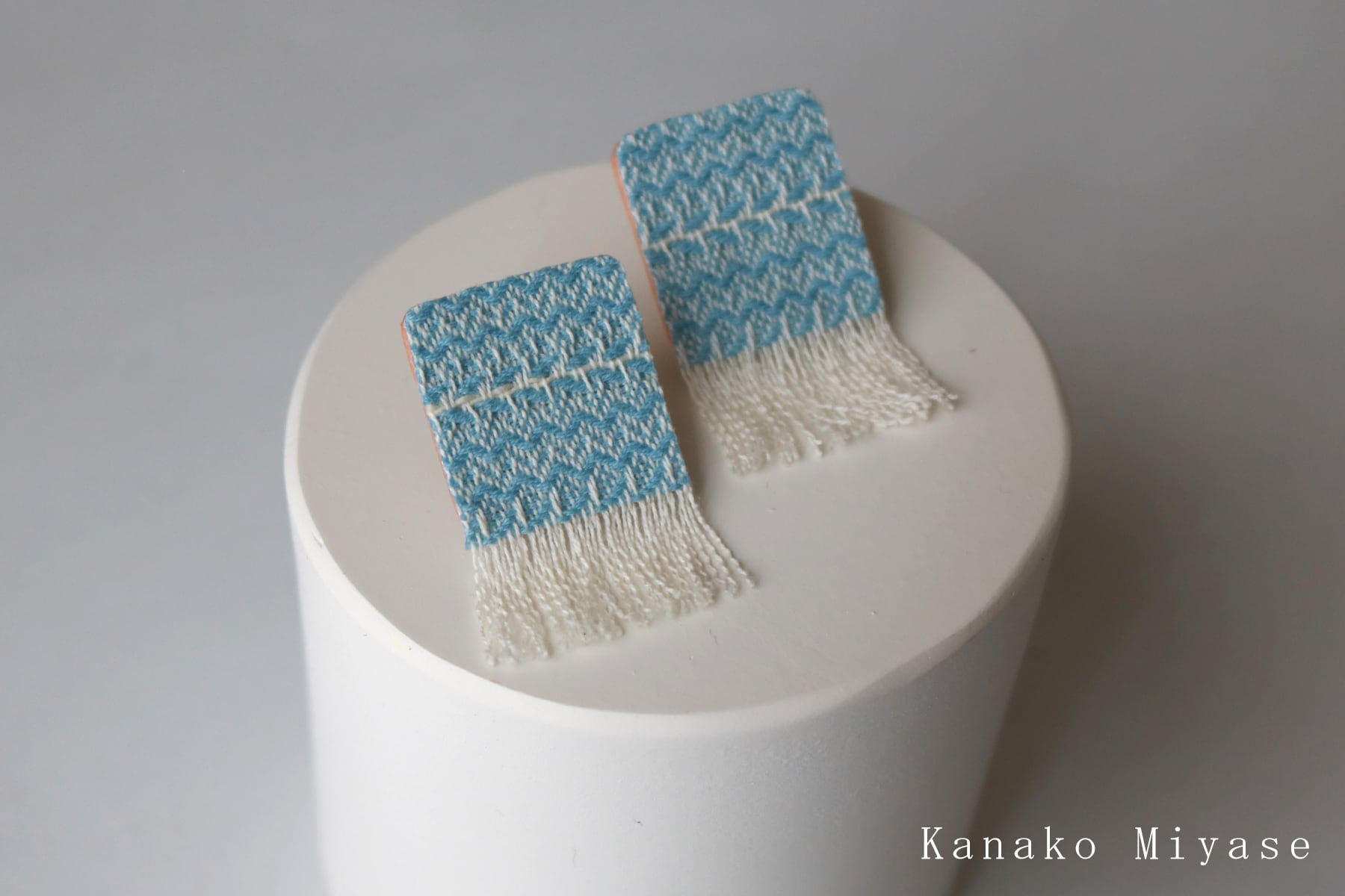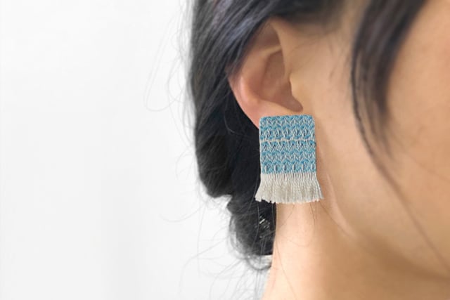 素材:手織り三河木綿 / 牛革 / ピアス(チタンポスト・樹脂キャッチ)・イヤリング(真鍮)