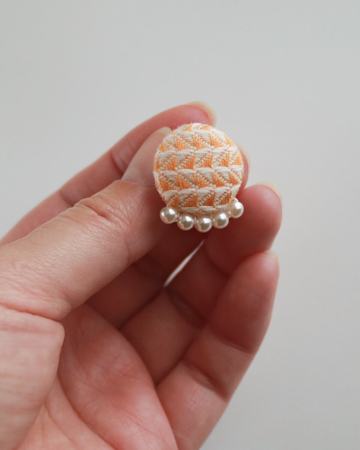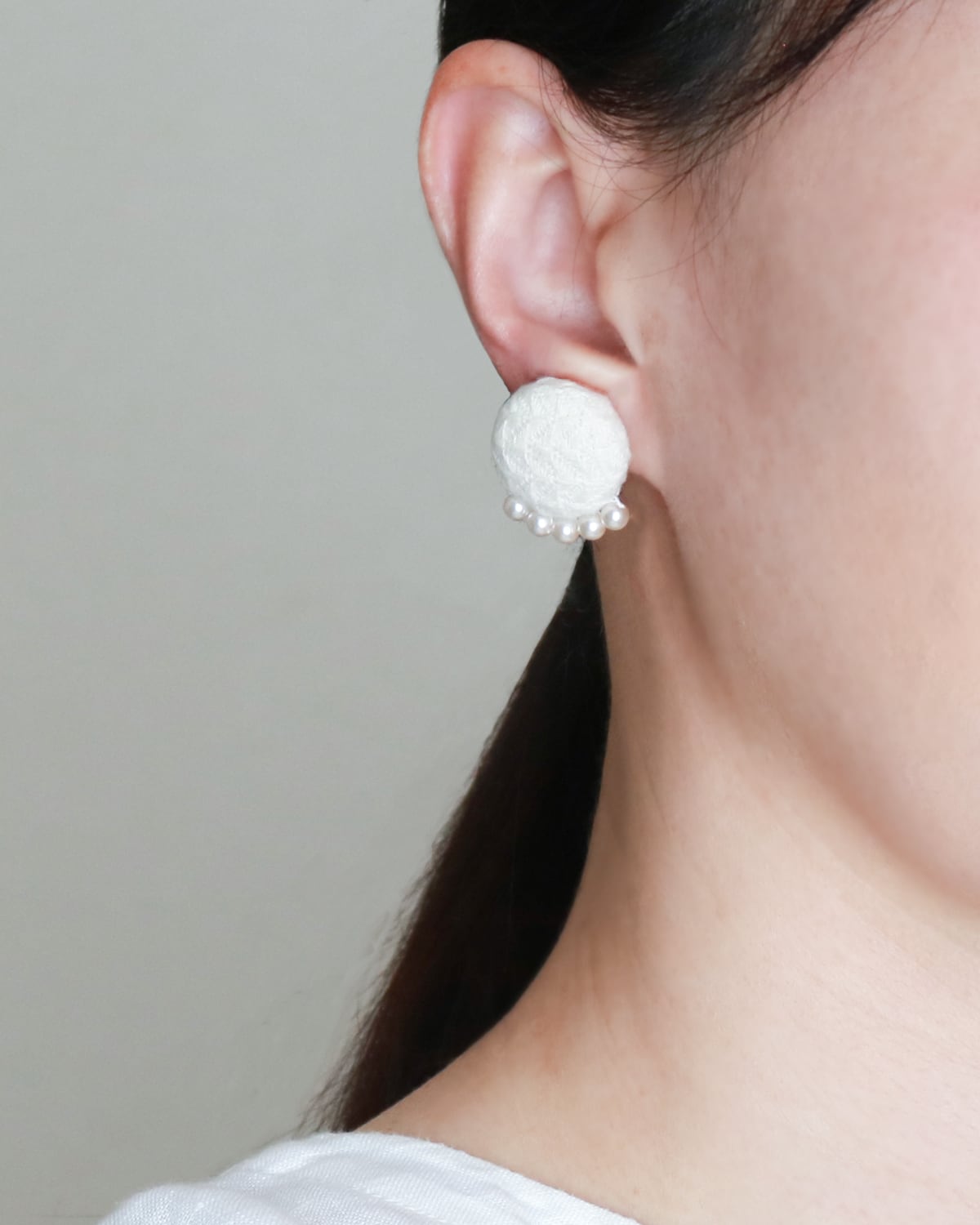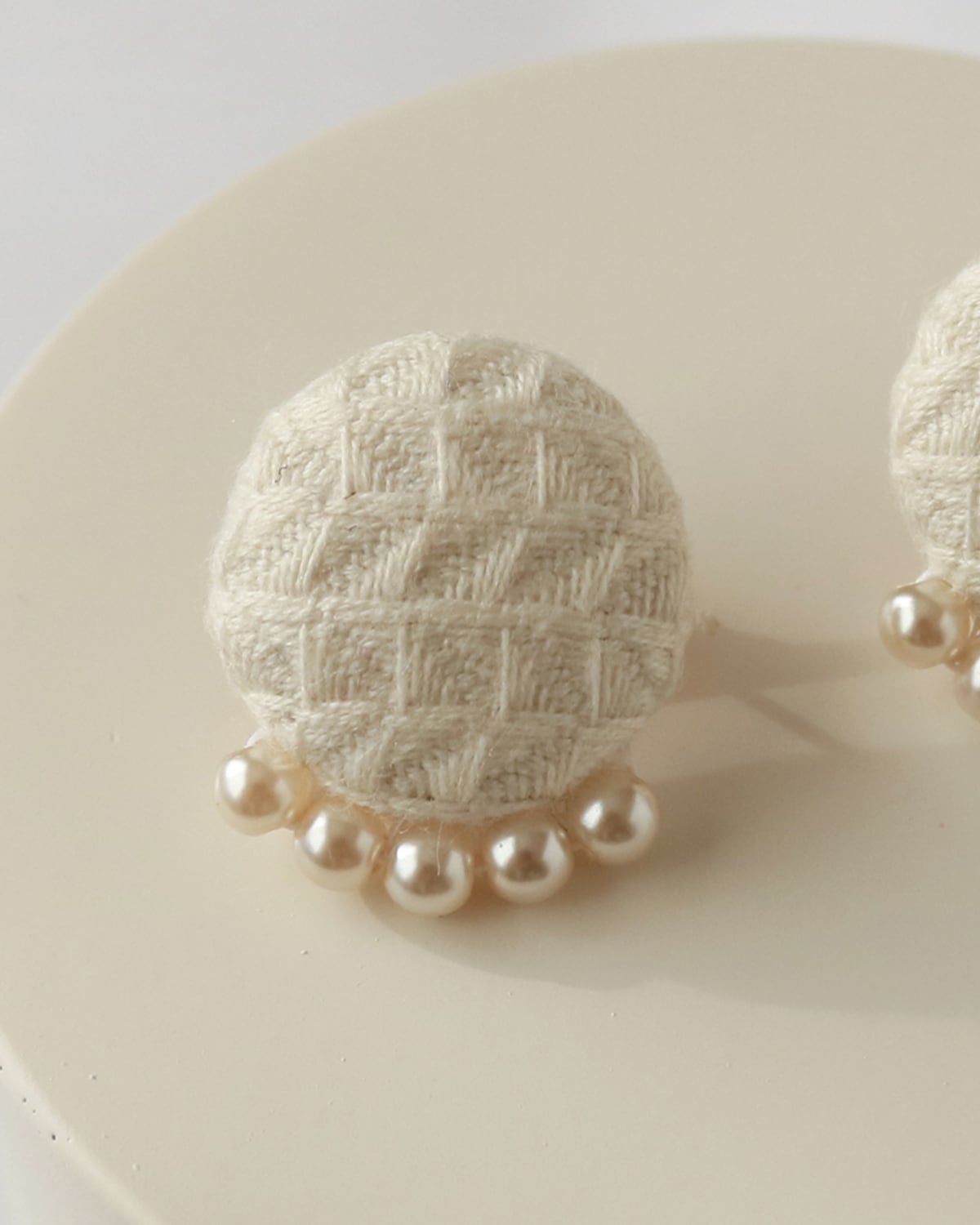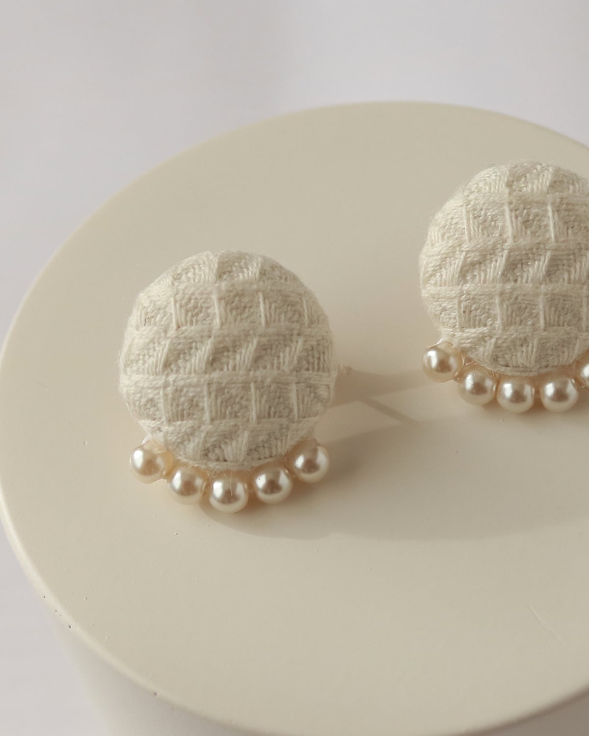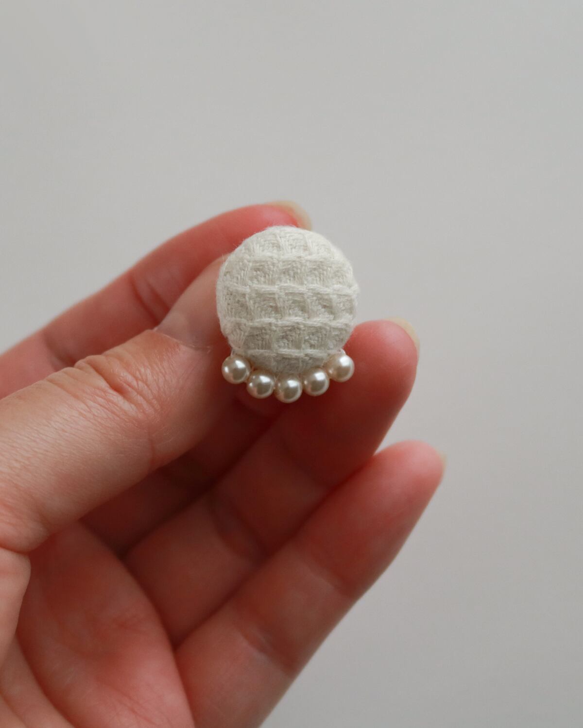 控えめな小粒パールが華やかさを添え、手仕事の温かみと丁寧な