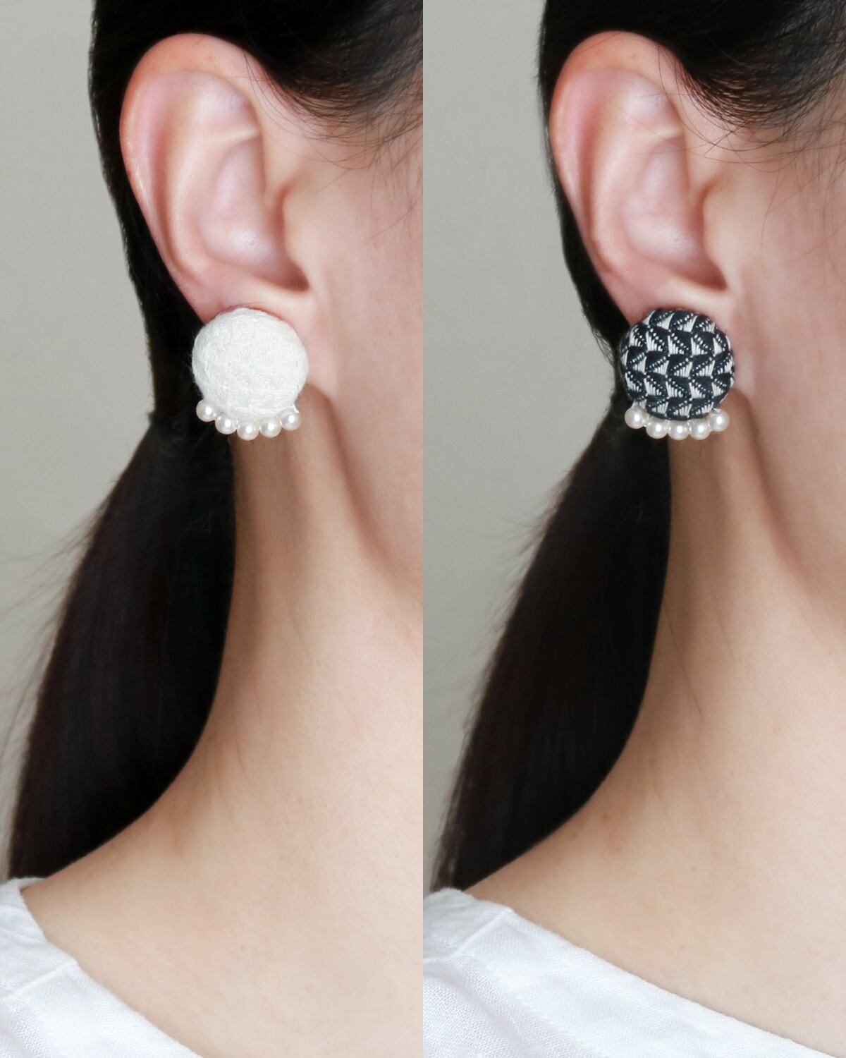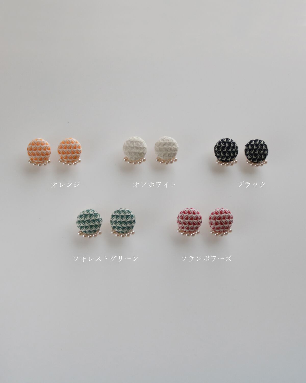 手織り三河木綿の軽いピアス|小粒パール付き 上質な手仕事[受注制作]5色展開