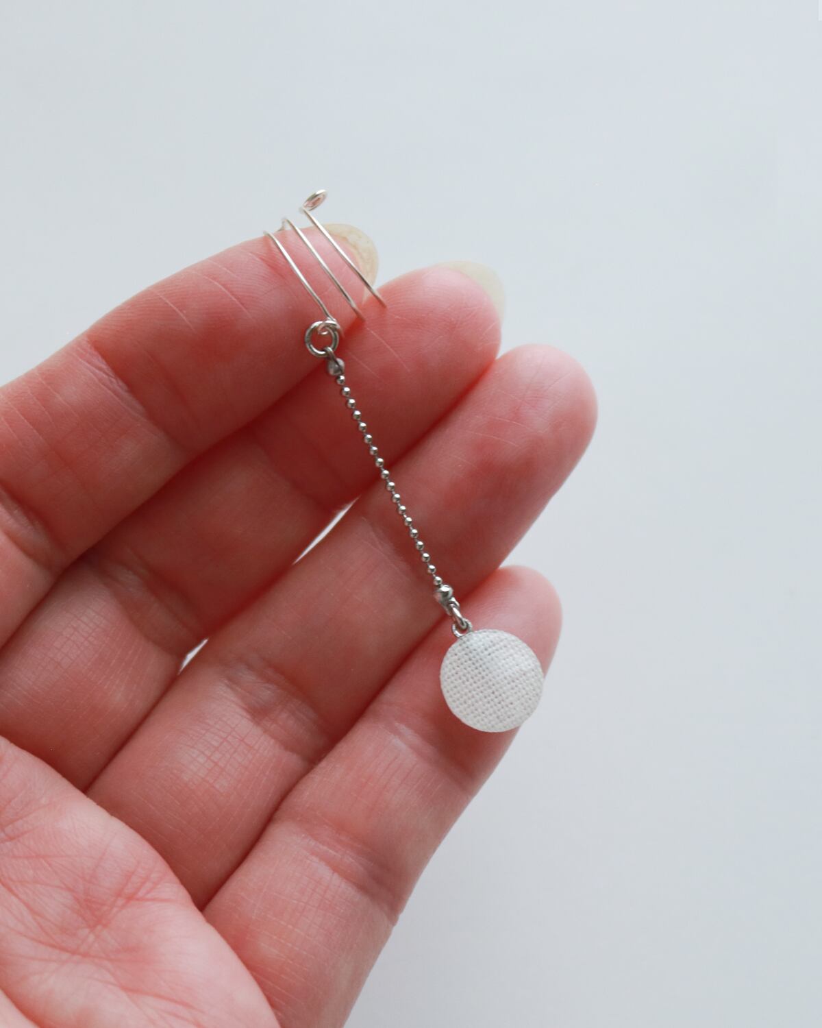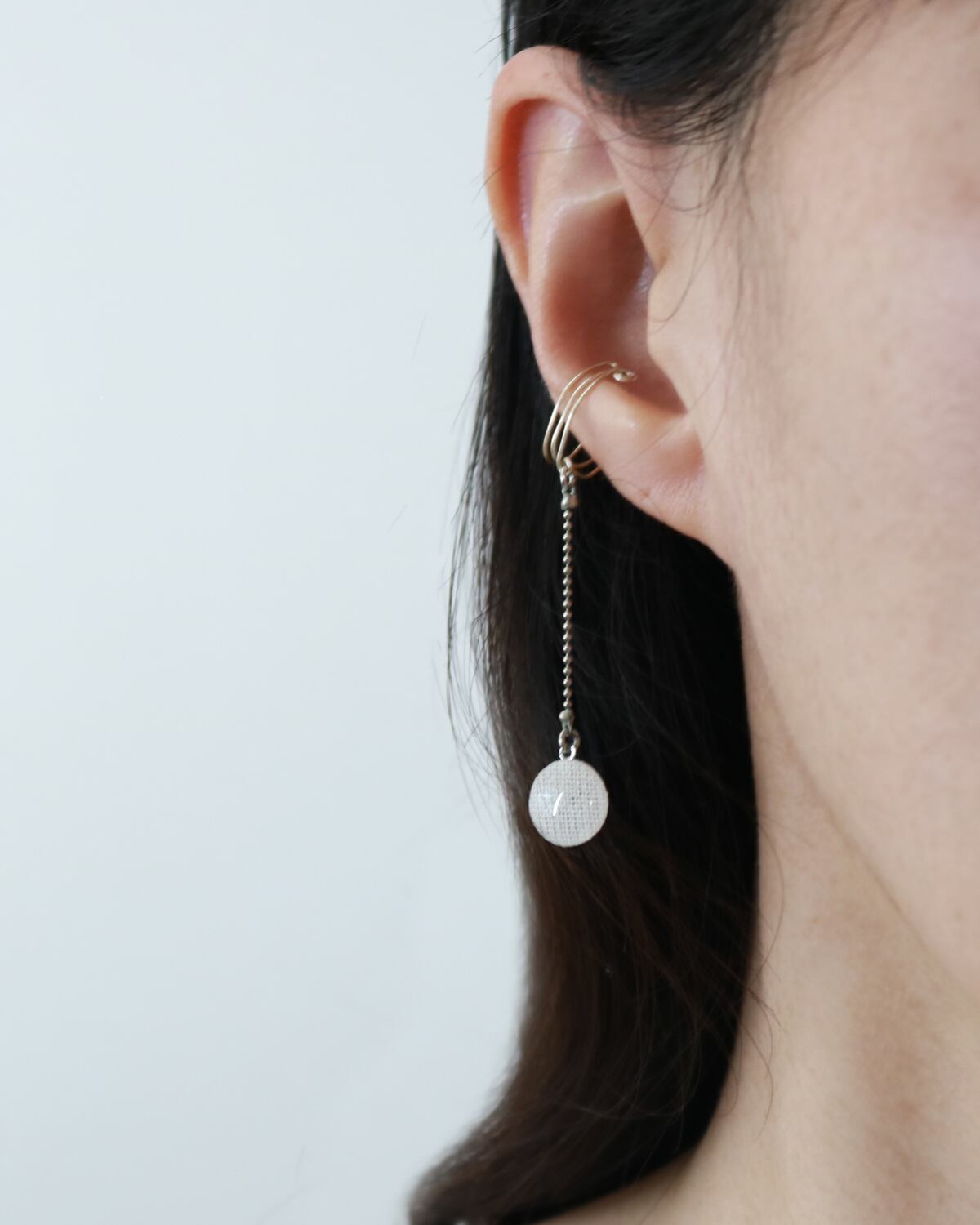 左右どちらの耳でも着けられるデザインになっております。