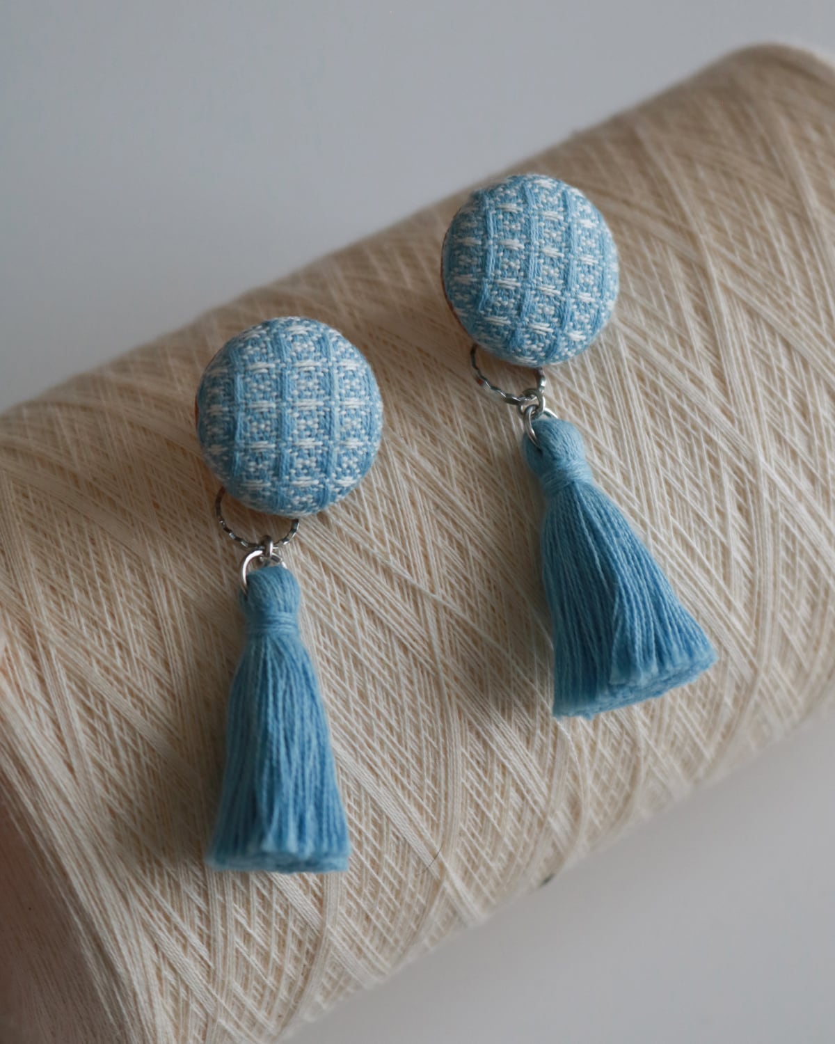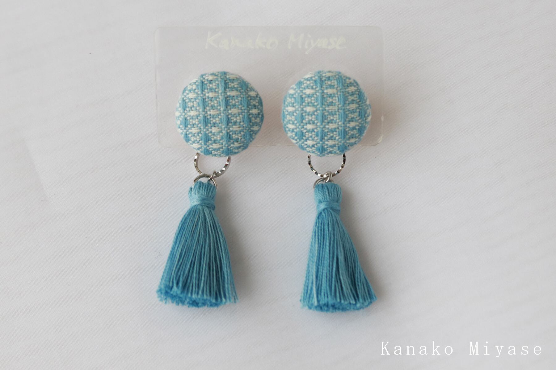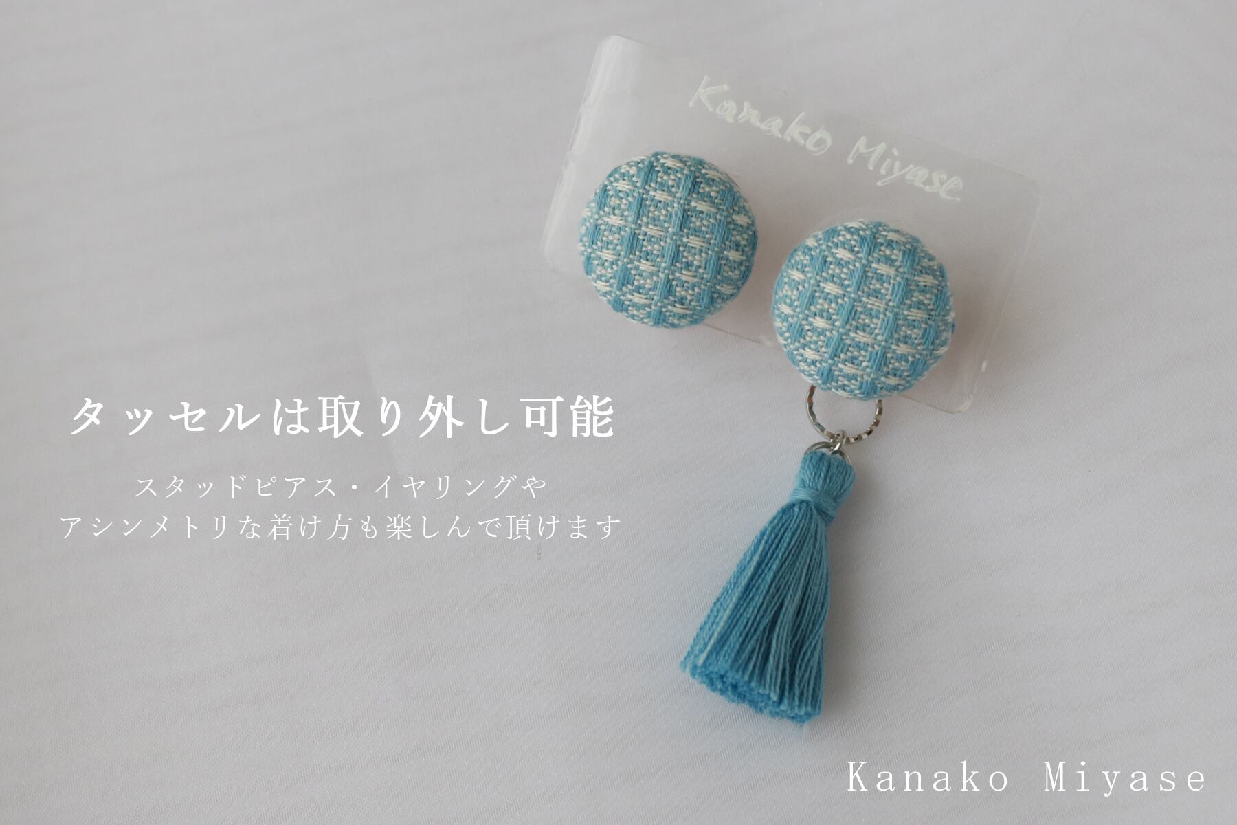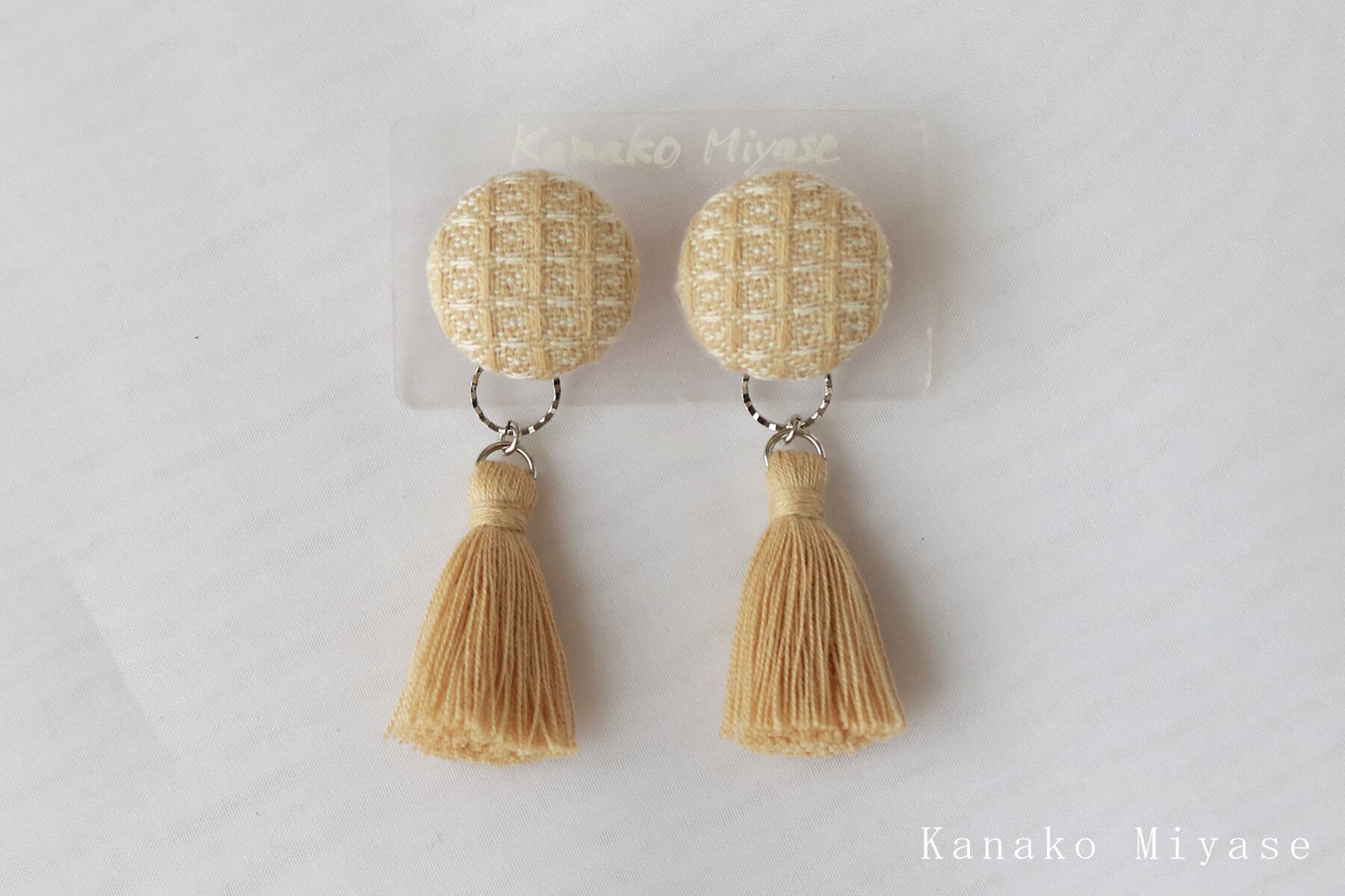 素材:手織り三河木綿 / ヌメ革 / ピアス(チタンポスト・樹脂キャッチ)・イヤリング(真鍮) / 綿糸(タッセル)