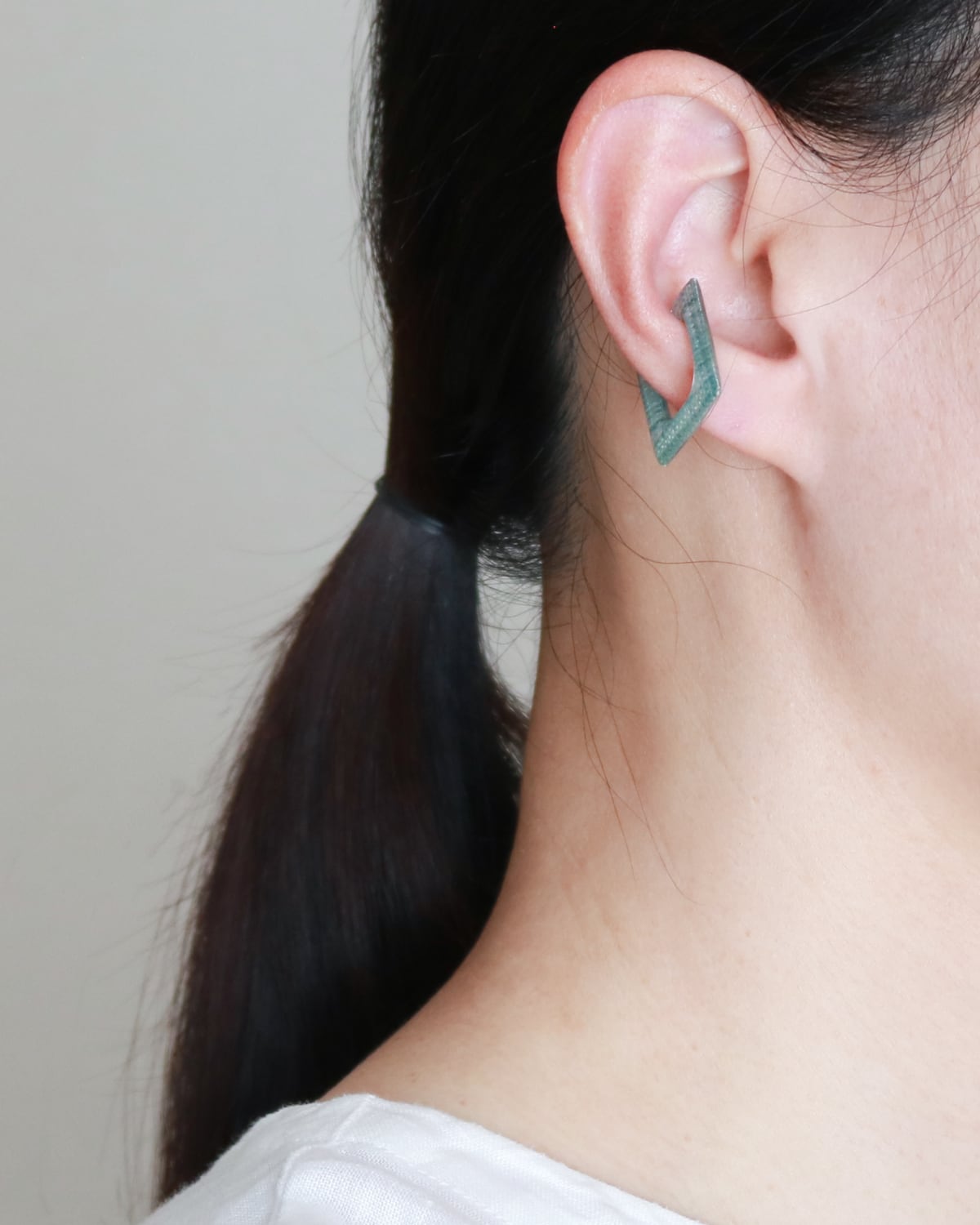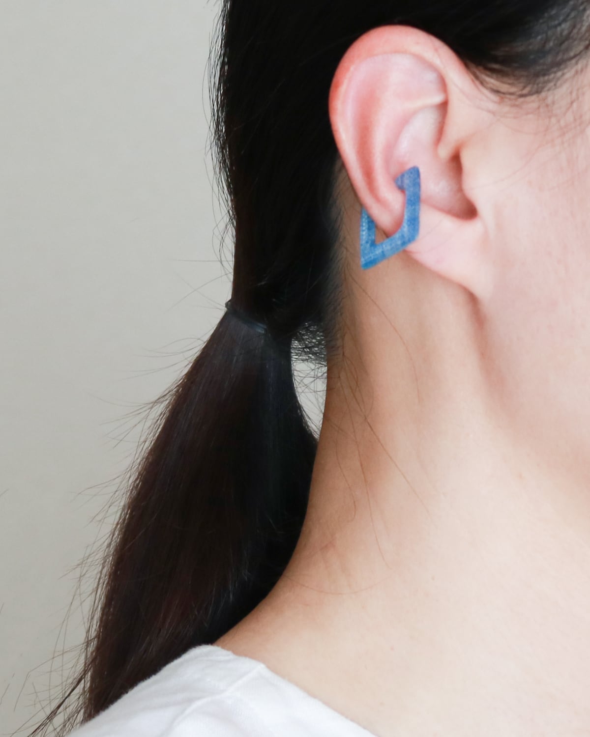 左右どちらの耳でも着けられるデザインになっております。