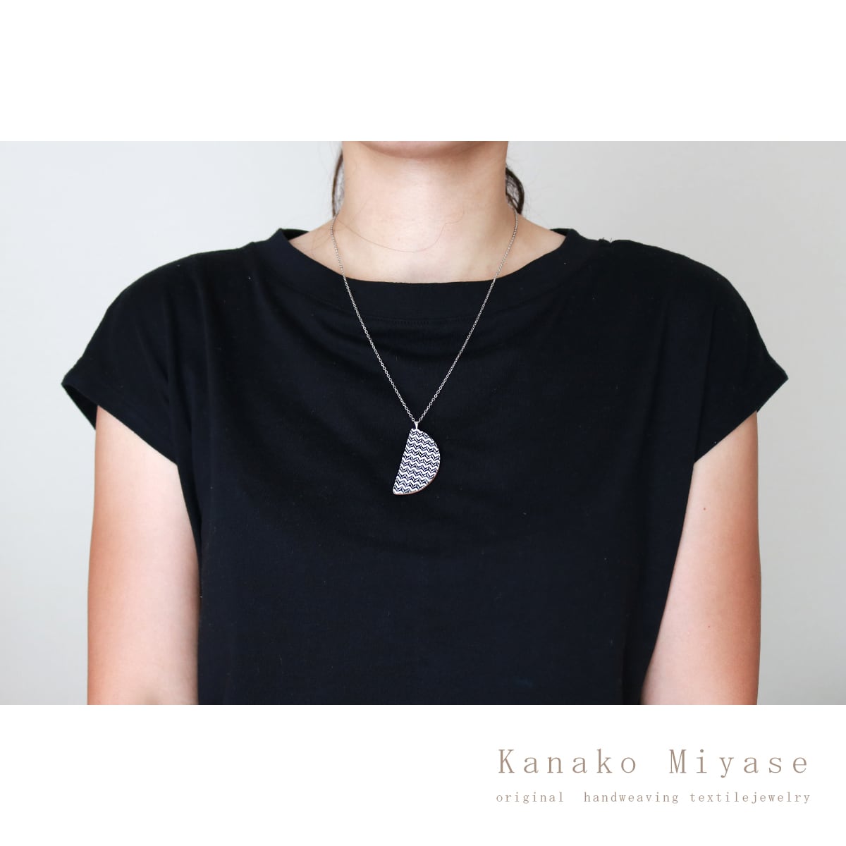 手織りネックレス【受注制作】/ 切りっぱなし半月(ハーフムーン) / オリジナル三河木綿使用■軽いネックレス■