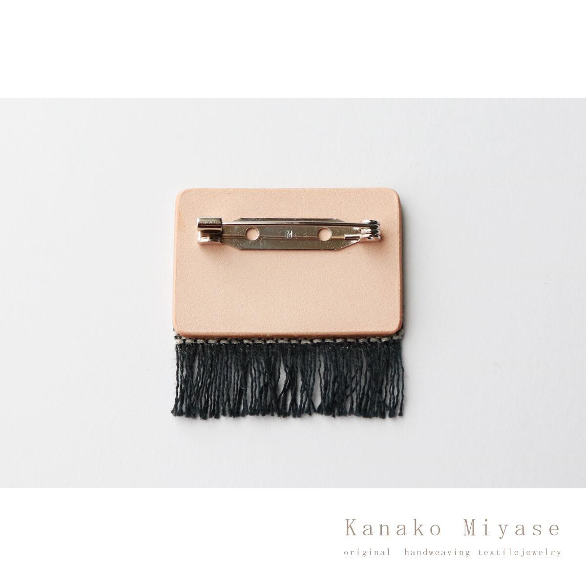 素材:手織り布 / 牛革 / 真鍮ブローチピン