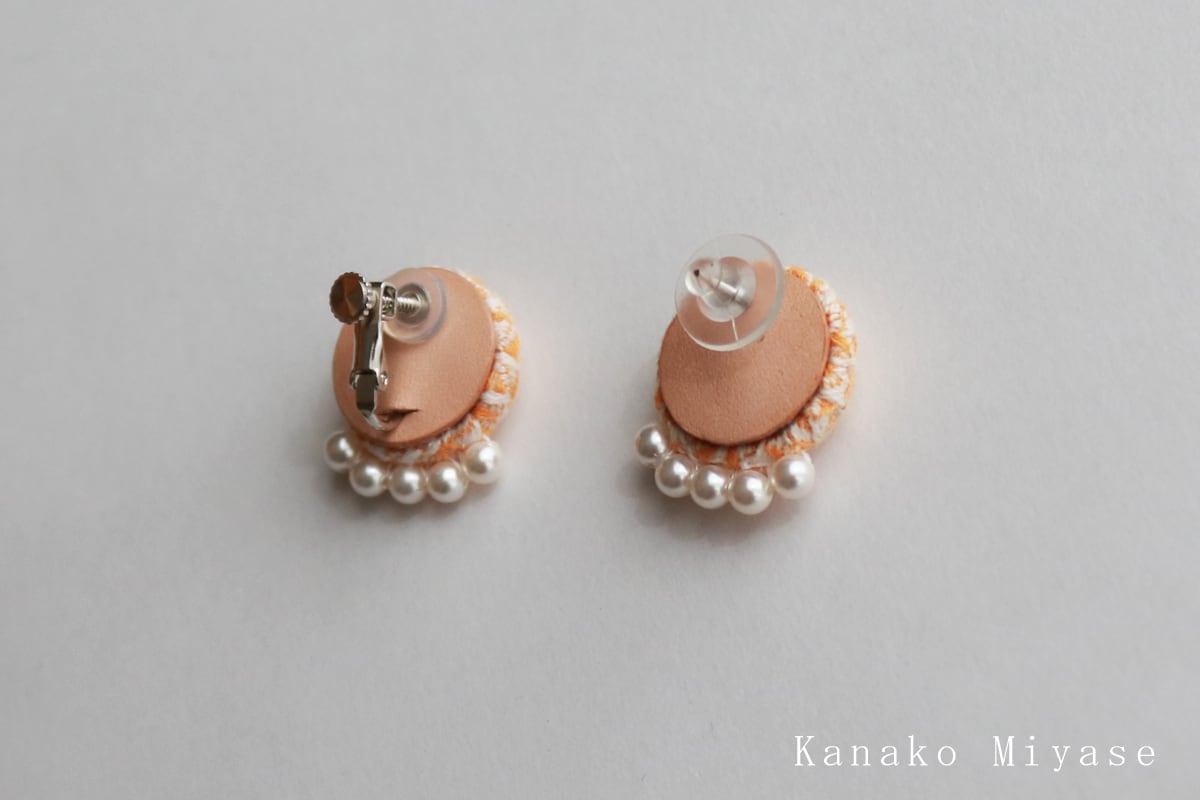 素材:手織り布 / ヌメ革 / ピアス(チタンポスト・樹脂キャッチ)・イヤリング(真鍮)・ガラスパール4mm