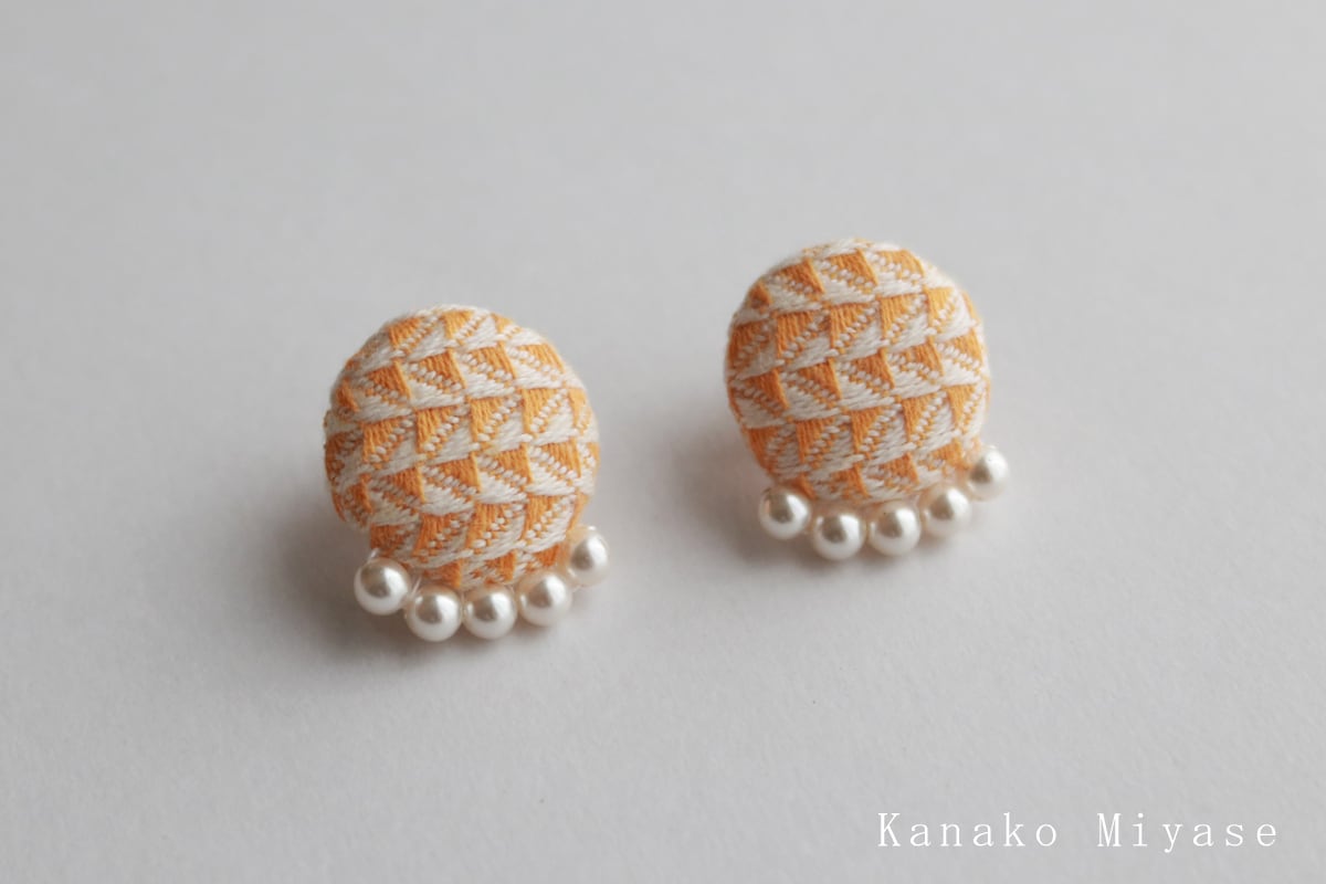 ピアス&イヤリング(ワッフル織) B【受注制作】オリジナル三河木綿使用■軽いピアス・イヤリング■