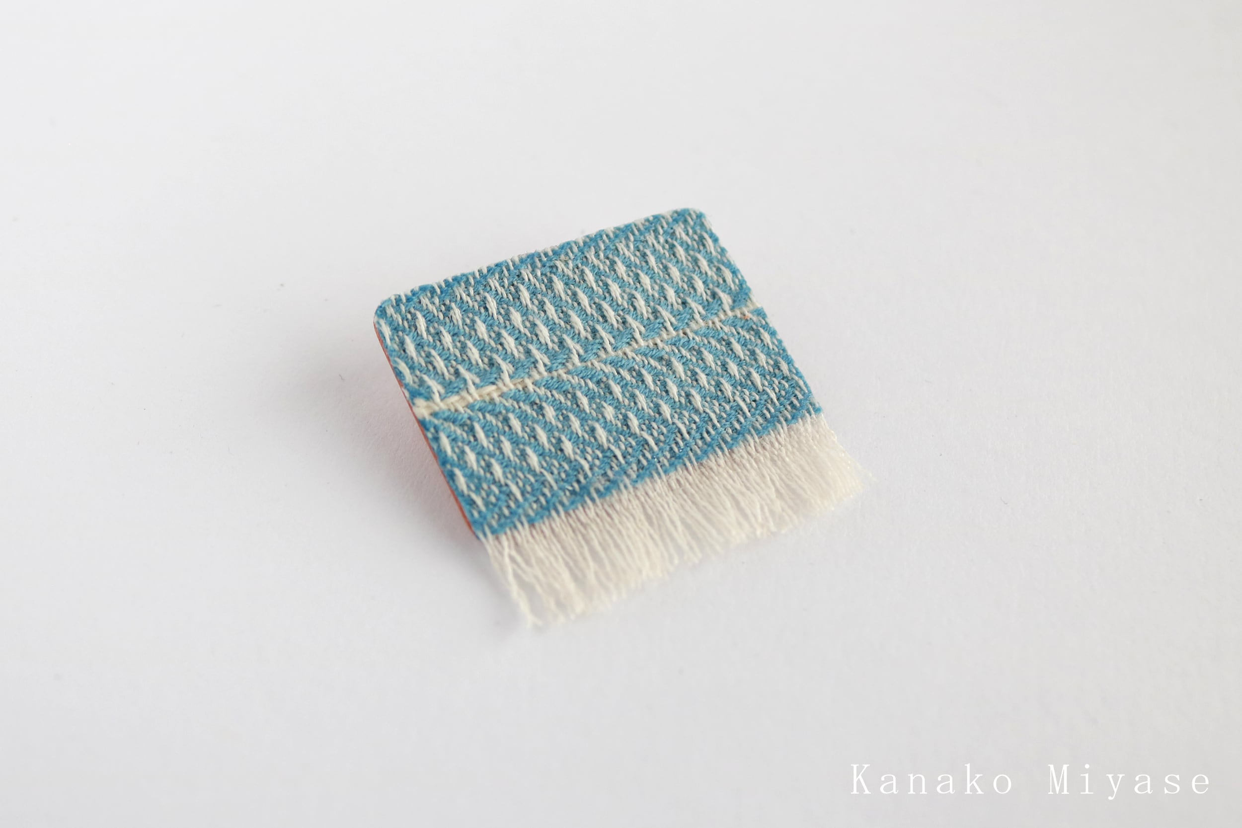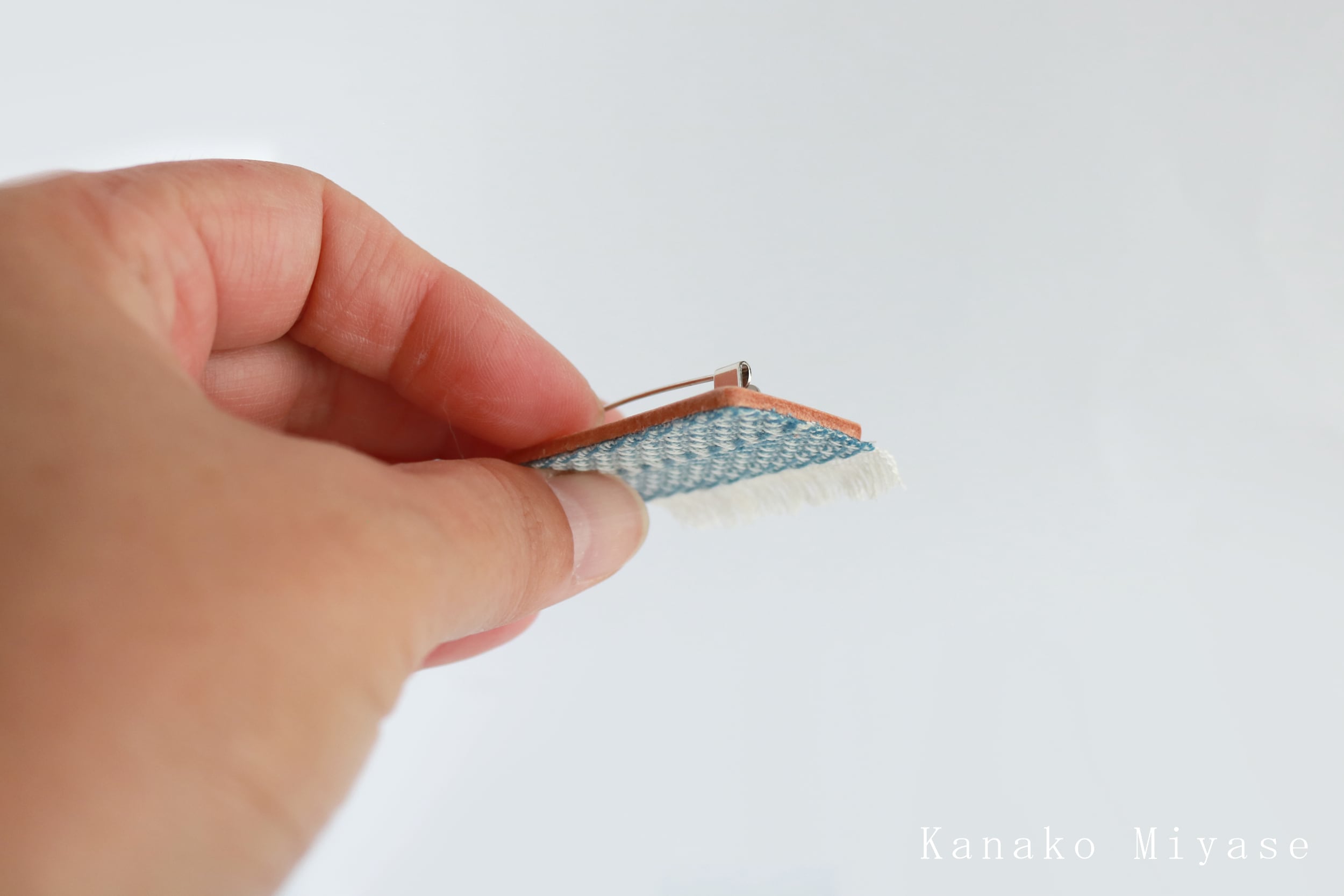 手染め糸と手紡ぎ糸の手織り布の切りっぱなブローチ【長方形】【受注制作】オリジナル三河木綿パーツ■