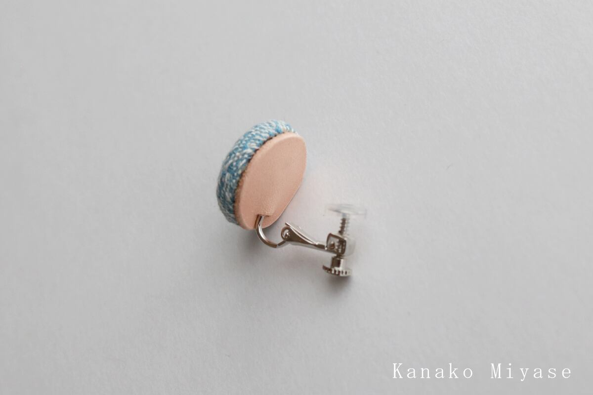 素材:手織り三河木綿 / ヌメ革 / ピアス(チタンポスト・樹脂キャッチ)・イヤリング(真鍮)