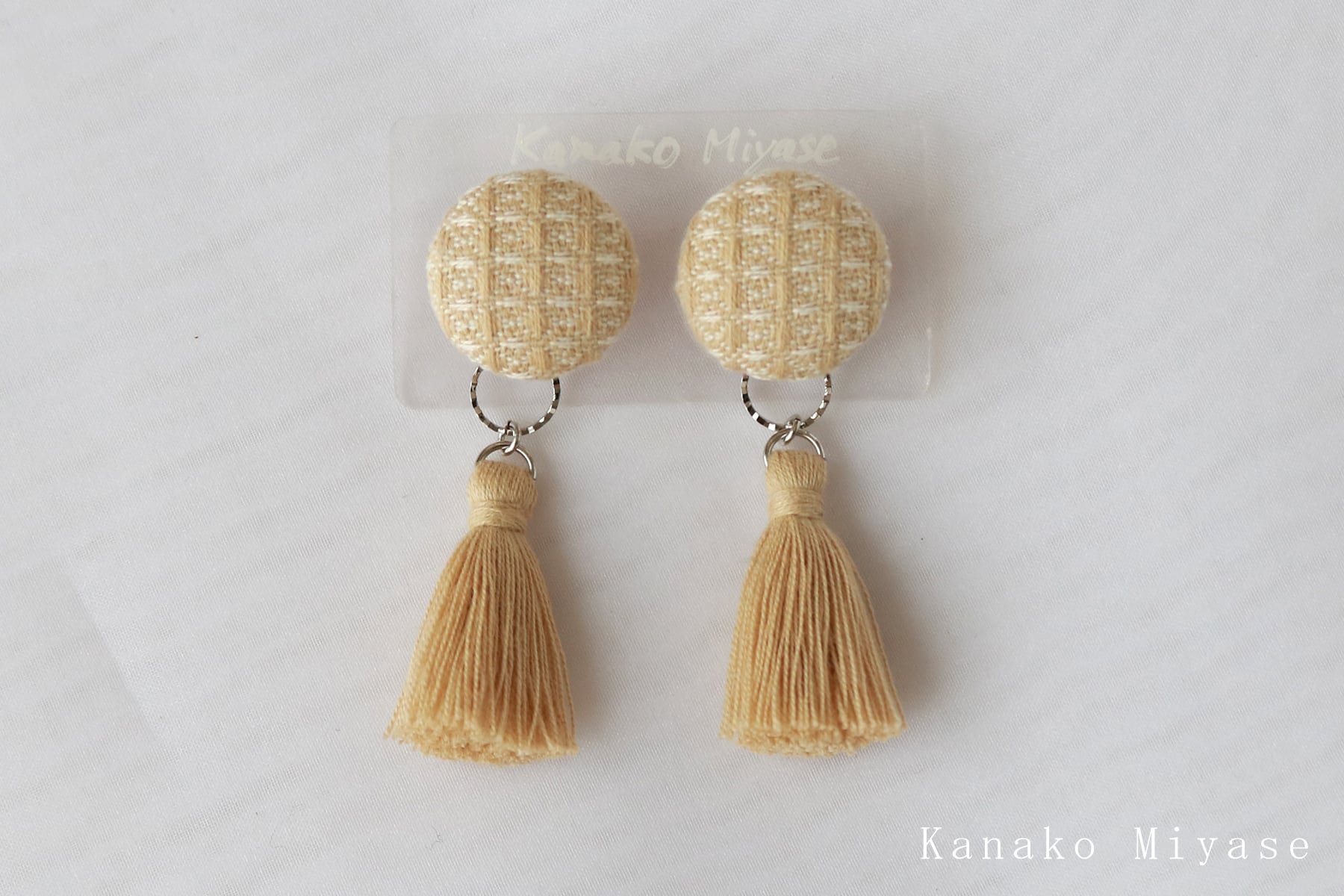 ピアス&イヤリング(ワッフル織)タッセル付き M【受注制作】藍の生葉染め・蒲郡みかん染め糸のオリジナル三河木綿使用■軽いピアス・イヤリング■