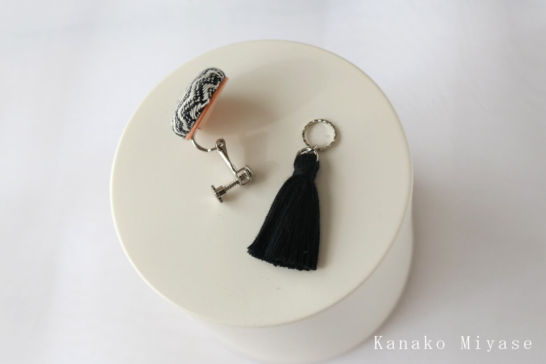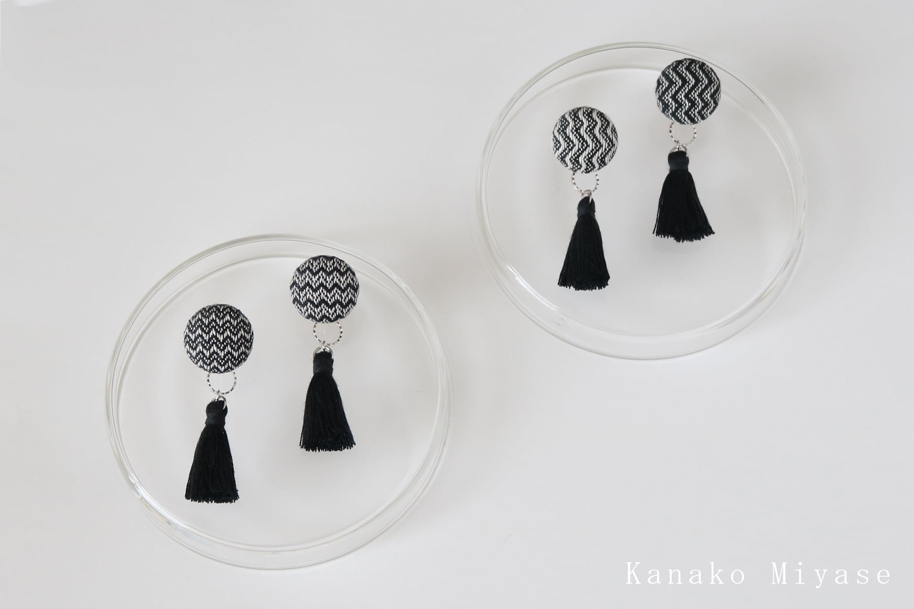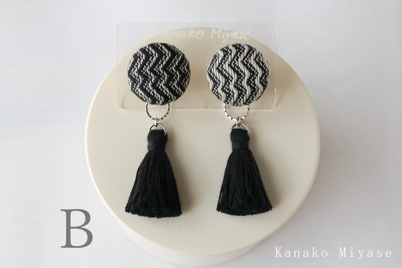 ピアス&イヤリング表裏生地のタッセル付き D【受注制作】オリジナル三河木綿使用■軽いピアス・イヤリング■